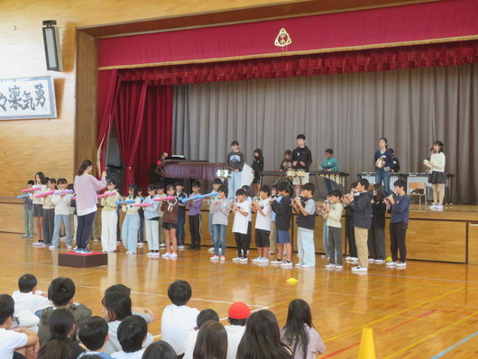 10月28日(火)、旭市小学校音楽会の壮行会を行いました。6年生は、合唱『僕らの日々』と合奏『Happiness』の2曲を披露しました。1〜5年生の児童は、6年生の素晴らしい発表を真剣に聞き入っていました。
