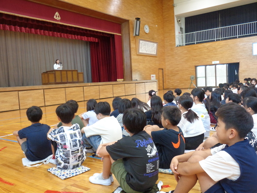 9月30日(火)、全校集会を行いました。前期が終わり、校長から前期の振り返りや後期に向けての話がありました。子どもたちは、立派な態度で話を聞くことができました。また、各教室に戻り、担任から前期の通知表を一人一人手渡されました。