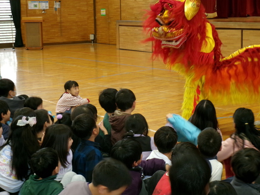 芸術鑑賞会11月18日(火)、芸術鑑賞会として「中国雑技」を鑑賞しました。最初に獅子舞が出てきて会場が盛り上がり、皿回し、中国ごま、一輪車、変面など多くの人離れした技に子どもたちはとても驚いていました。また、中国ごま、太極拳の体験や中国語クイズなどで楽しむことができました。 |