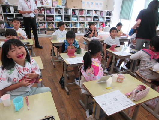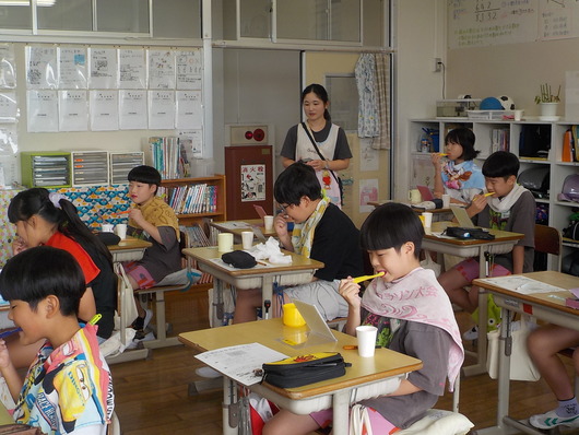 ![]() 歯科指導5年生の様子 2年生の様子 9月29日(月)に3・5年生、30日(火)に2・4年生を対象に、歯科指導を行いました。旭市子ども家庭課の歯科衛生士の方々をお招きし、歯の大切さについて学びました。歯の染め出しをし、正しい磨き方についても確認することができました。 |