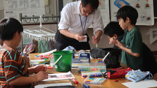 ![]() 子ども工作教室活動の様子 9月30日(火)午後に、子ども工作教室が行われ、3〜6年生の希望者が、キーホルダー作りをしました。下絵の上にプラ板を重ねて絵を描いた後にトースターで焼くという手順で、思い思いのキーホルダーを作り上げていました。毎年参加している児童は、発展的な作成の仕方にも挑戦していました。 |