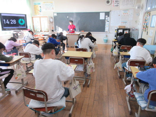 11月21日(金)朝の活動の時間に、第5回勉強グランプリが行われました。今回は、前期で学んだ漢字の問題が出題されました。漢字の学習が始まったばかりの1年生は、すでに学習を終えているカタカナの書き取り問題に取り組みました。 なお、感染症の状況で実施が難しい学年は、後日行いました。