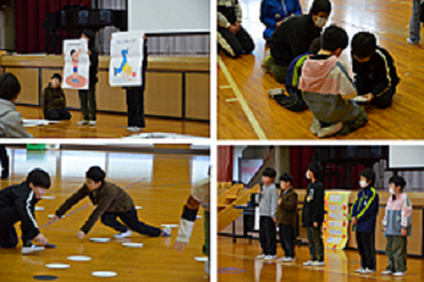 ふれあい交流会![]() 11月18日、特別支援学級の子どもたちが、干潟中体育館で行われた干潟中学区のふれあい交流会に参加してきました。萬歳小からは、クイズを出したり、手作りキーホルダーをプレゼントしたりしました。また、他の学校の発表も、楽しむことができました。特にオセロゲームは子どもたちに人気で、夢中になって行っていました。 |
