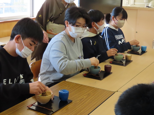 6年生が茶道教室を行いました。室町時代から受け継がれる文化にふれ、感動している児童が多かったです。普段、なかなかできない体験に児童はとてもわくわくし、楽しんでいました。
