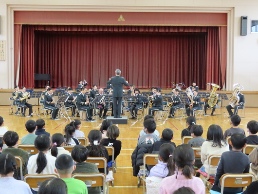 1月20日(火)に、千葉県警察音楽隊をお招きし、音楽鑑賞会を行いました。素敵な演奏とともに、カラーガード隊「アクア・ウインズ」の演技もあり、子どもたちは終始、引き込まれている様子でした。また、音楽隊オリジナルの紙芝居「いかのおすし・5つのやくそく」を通して、安全への話もしていただきました。音楽の楽しさを実感できる素敵な時間を過ごすことができました。