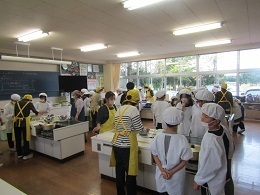 10月21日(火)5年生が食農推進事業の一環で食育アドバイザーと市役所農水産課の方をお招きして味噌汁とおにぎり作りを体験しました。旭市が全国有数の野菜生産地であることを知り、その食材を使って調理することをとおして、子どもたちからは改めて新鮮野菜のおいしさやお米が甘く、つやのある様子を知ることができました。旭市の食の豊かさを味わうとてもいい機会となりました。