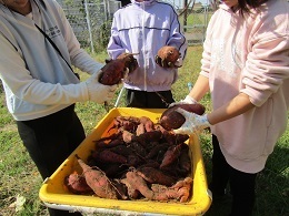 10月30日(木)2年生がさつまいも掘りを行いました。春に植えた苗が大きく育ち、猛暑により生育を心配しましたが、立派なさつまいもに育ちました。子どもたちは、「こんなに大きなおいもがあったよ!」「おもしろい形だね」などと手や洋服を土だらけにしながら楽しく掘りました。各家庭でどんな美味しいメニューで味わったか報告が楽しみです。