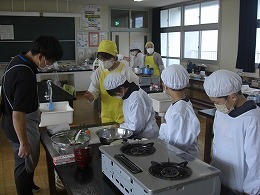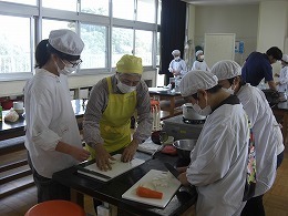 10月27日(月)に旭市の農水産課の方と保健推進委員の方に来校いただいて、食農推進事業を行いました。旭市産の食材をつかって、おにぎりと味噌汁をつくりました。 保健推進委員の方々からは、だしの取り方や食材の切り方を教えていただきました。料理はとても美味しく、参加者みんなで舌鼓を打ちました。 料理をつくるという体験を通して、地産地消や命の教育、ふるさとを愛する心を養う学習につながりました。