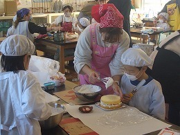 1月16日(金)に、家庭教育学級第3回学習会と閉級式を実施しました。今回は親子でケーキづくりを行いました。朝、廊下ですれ違うと「今日、ケーキをつくるんだよ。」とにこにこしながら話してくれる子もおり、楽しみにしていることがうかがえました。