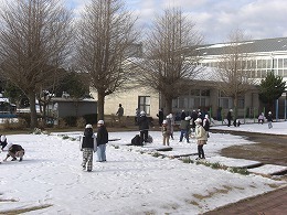 2月7日(土)、8日(日)に降った雪が、本校にはまだ溶けずに残っています。子供たちは雪合戦をしたり、雪だるまをつくったりと、思い思いのやり方で雪を楽しんでいます。温暖な本市では、なかなか経験できない体験をさせることができています。着替えがないので、服を濡らさないように注意をしながら、冬ならではの体験をさせていきます。