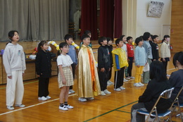 2月27日(金)に「6年生を送る会」を開催しました。この行事の趣旨は、1から5年生が卒業する6年生に1年間の感謝の気持ちを伝えることなのですが、学校においては代替わりの通過儀礼のような意味合いももっています。本校では5年生を中心に企画・運営にあたりました。
