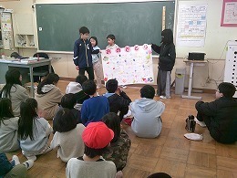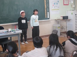 卒業式が3月14日(土)に迫ってきています。そんな中、3月9日(月)の4校時に1・2年生が6年生を招待し「お別れお楽しみ会」を開きました。この会は、これまでお世話になった6年生に感謝の気持ちを伝え、卒業をお祝いしようと、1・2年生が企画・運営を担いました。 6年生は、1・2年生の気持ちをよく理解し、時々たどたどしくなる進行を温かく見守りながら参加していました。昼休みには、1・2年生と6年生が鬼ごっこをする姿が見られ、子供たちの心の距離が、さらに縮まったように感じられました。