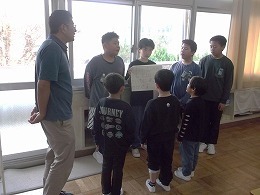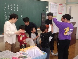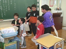4月13日(月)に異学年交流の一環として、1年生が6年生に校歌を教えてもらいました。三つのグループに分かれて活動を行いました。1年生は元気な声で歌を歌うことができました。6年生は平仮名で書かれた校歌の歌詞カードをグループ別に用意し歌っているところを指さしたり、1年生の良い所を見つけて誉めながら活動できました。 こうした異学年交流を通して、先輩に感謝したり、後輩をいたわったりする気持ちや態度を育てていきます。