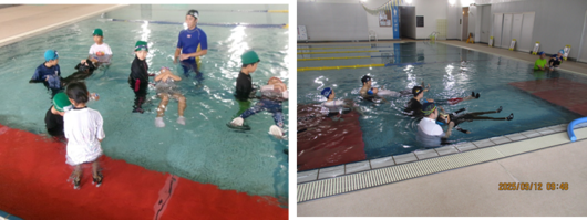 9月11日(木)にSDフィットネス旭店さんのご協力を得て、着衣泳講習会を行いました。1年と6年、2年と5年、3年と4年の2学年ごとにおよそ1時間の講習を受けました。着衣のまま入水したときの浮き方や溺れている人を発見した時の適切な対応などとても有意義な体験となりました。きめ細かくご指導していただいたSDフィットネス旭店のインストラクターの皆様、ご協力ありがとうございました。
