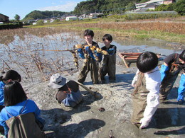 このたび、地域のレンコン農家さんのご厚意により、レンコンの収穫を体験させていただきました。普段はなかなか触れることのできない農作業を間近で体験でき、泥の中から立派なレンコンが姿を現す瞬間には大きな感動がありました。農家の方からは、レンコンの育て方や収穫の工夫など、日々の努力や知恵についても教えていただき、改めて地域の農業の大切さを実感しました。