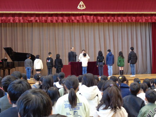 3月22日(金)、令和5年度の修了式を行いました。先日卒業した6年生がいない体育館は少し広く感じられました。5年生から1年生までの各クラスの代表が、大きな声で返事をして立派な態度で校長から修了証書を受け取ることができました。また、校長からの1年間の成長をたたえる励ましの話にも、とても真剣な態度で聞き入っていました。無事修了式を迎えることができましたのも、保護者、地域のみなさんのご理解とご協力のおかげと深く感謝しております。ありがとうございました。次年度もよろしくお願いします。