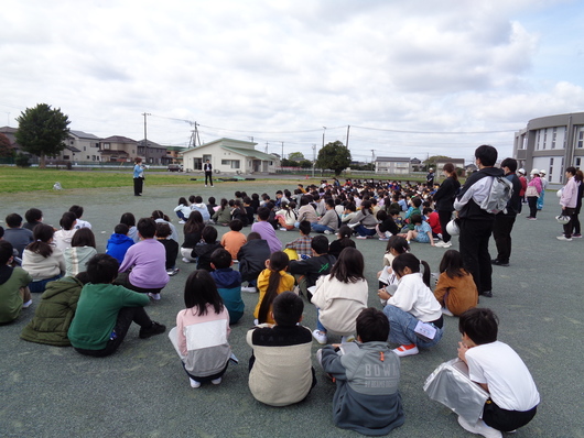 4月11日(木)、3校時に避難訓練を実施しました。今回は、進級した教室から新たな避難経路を通って、迅速に避難することを目的に行いました。今週、入学した1年生も、「お・か・し・も」の「避難の約束」をよく守って避難することができました。この経験が、お子さんが一人で留守番している場面等、学校外でも役立つようご家族で話題にしてみてください。