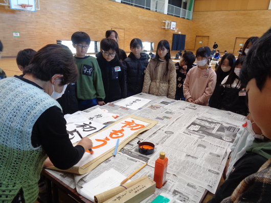 12月18日(木)、19日(金)に4〜6年生の書き初め教室を行いました。子どもたちは、書き初めの準備の仕方や筆の使い方、書き方など、講師の先生の説明をよく聞いて、熱心に練習に取り組んでいました。