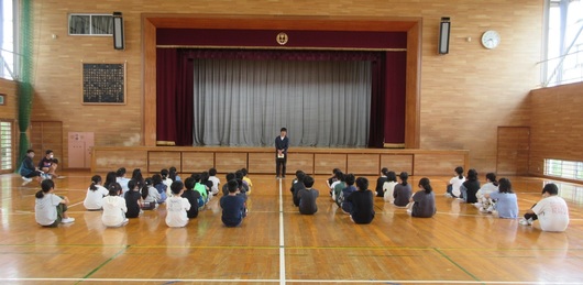 陸上部解団式陸上部解団式 5月19日(金)に陸上部の解団式が行われました。校長先生や体育担当の先生からのお話を聞きました。また、部長と副部長の児童から5・6年生へ向けたメッセージがありました。約1か月の活動でしたが、練習や大会を通して培ったものを今後の学校生活でいかし、琴田小全体をリードしていくことを期待しています。 |