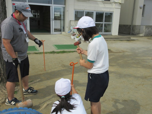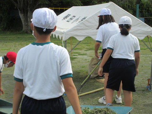 6月1日(木)運動会の準備を行いました。4年生は草取り、5年生は杭打ち、6年生は机・イス出しやロープ張りなどを行いました。2日(金)に予定されていた運動会は、天候不良により5日(月)へ延期となりましたが、児童は準備を一生懸命頑張っていました。この頑張りが運動の成功につながることを願っています。