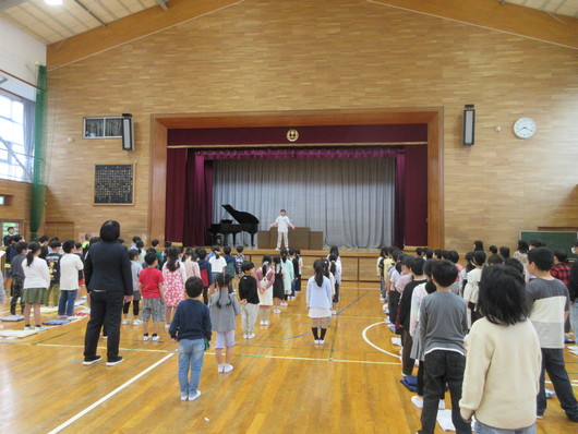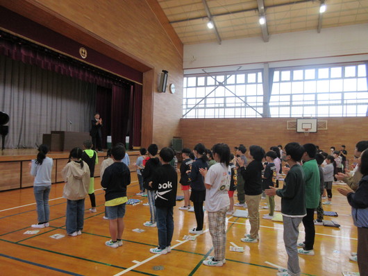 5月の全校集会4月の歌「たんぽぽ」合唱の様子 先生の話の様子 5月1日(水)朝の活動時間に全校集会を行いました。校歌や今月の歌の斉唱では「響け歌声」を目指し、元気よく歌うことができました。また、校長先生の話や先生の話を真剣に聞いていました。先生の話では、周りの人と気持ちを合わせて手拍子をすることができました。 |
