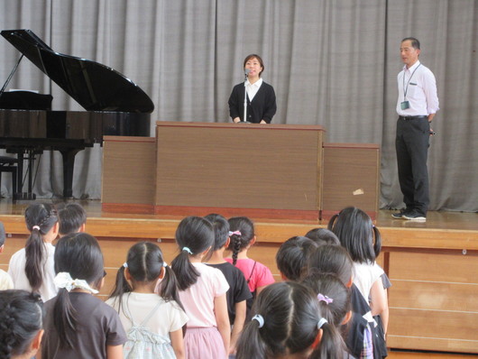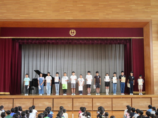 6月10日(月)朝の活動の時間に、受賞者紹介、全校集会を行いました。紹介した内容は以下のとおりです。 ・旭市市民陸上大会 ・旭市小学校体育大会 また、全校集会では、新しく勤務することになったスクール・サポート・スタッフの方の紹介もありました。月曜日から金曜日の午前中に来校し、印刷物の準備や採点などを行います。