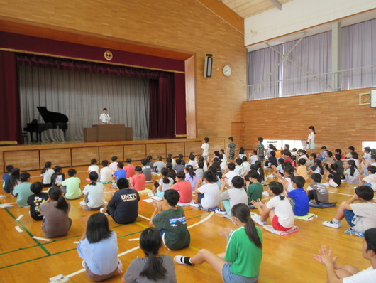 7月19日(金)1校時に、受賞者紹介、全校集会を行いました。紹介した内容は以下のとおりです。 ・歯と口の健康週間図画ポスターコンクール また、全校集会では、校長先生から読書賞受賞者の紹介や夏休みの過ごし方についての話がありました。健康と安全に留意し、夏休みを過ごしてほしいと思います。
