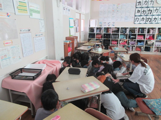 12月2日(月)4校時にワンポイント避難訓練を行いました。ワンポイント避難訓練は、児童に時間と内容の予告がなく、今までに実施した訓練の中から放送を聞いて判断し、1次避難を行います。 今回は、11月に行った不審者対応の復習として行われ、放送を聞くとすぐにバリケードを作成し、身を守ることができました。