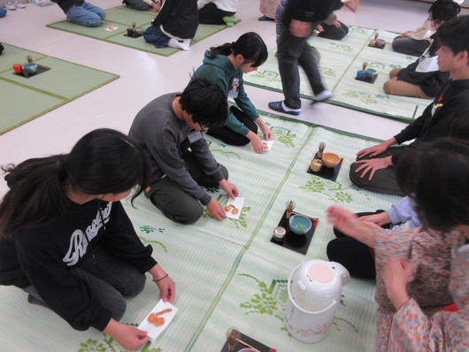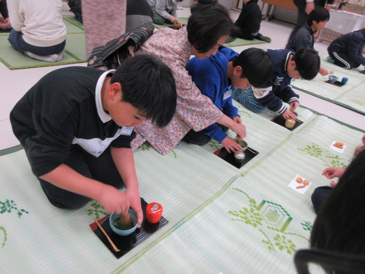 茶道教室5年生の様子 6年生の様子 12月16日(火)2時間目に5年生、3時間目に6年生を対象とした茶道教室を行いました。講師の方々から、礼儀作法やお茶の点て方、茶道の歴史などを学びました。「苦かったけど、お菓子と一緒にしたら全部飲めた。」「泡を作るのが難しかった。」などの感想がありました。 |