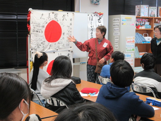 平和学習講話の様子 1月22日(木)2・3校時、6年生を対象に平和学習を行いました。ピーススタッフ旭の方をお招きし、戦争を体験した方の話をもとに作成された紙芝居や、軍服やヘルメットなどを身につける体験をしました。教科書だけでは知ることができなかった戦争の惨状を、真剣に学んでいました。 |