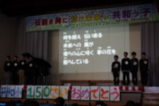 11月13日は共和小の創立記念日でした。今年は創立150周年の記念の年となり、11月14日に創立記念をお祝いする集会を行いました。集会は6年生が中心となり会の運営・進行を行いました。