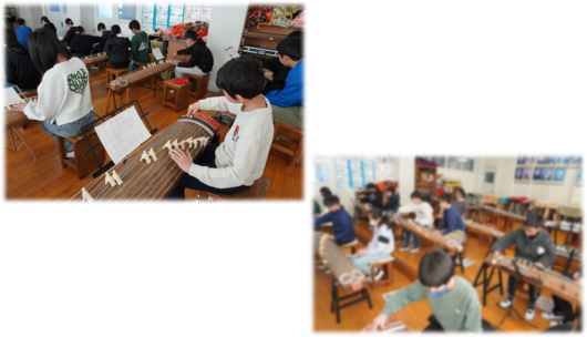 1月13日(火)・14日(水)に、5年生と6年生が箏の学習を行いました。最初は戸惑いながら弦を弾いていましたが、次第に慣れ、きれいな「さくら」を演奏することができました。