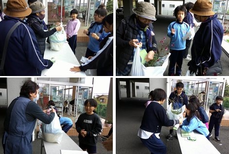 10月21日、4年生が地域の希望者を対象に自分たちで作った寄せ植えの配布を行いました。スッキリとしない天候でしたが、子どもたちが心を込めてお渡しすることができました。今年度から二次元コードの申込も可能としたこともあってか、昨年度より希望者が増えました。 この取組は次年度も実施する予定です。時期になりましたら地区の回覧でご案内いたしますので、ご応募をお待ちしています。