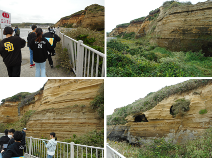 10月15日、6年生は銚子市の屏風ヶ浦に理科学習の一環として、地層見学に行きました。壮大の景色の中、地層の様子はもちろんのこと、地層のずれや波によって削られた穴等を観察することができました。