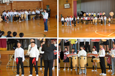 10月28日、翌日に迫った市の小学校音楽会のリハーサルを兼ねた発表会を体育館で行いました。1〜3年生の前で、堂々とした歌声、演奏を披露しました。いよいよ本番、2ヶ月近く練習してきた成果をぜひ会場に響かせてほしいと思います。