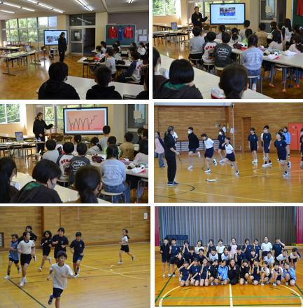講話の後は体育館に移動し、ランニングクリニックを実施しました。楽に楽しく走る方法を丁寧に教えていただきました。短い時間でしたが、きついイメージのランニングが楽しく感じるようになりました。
