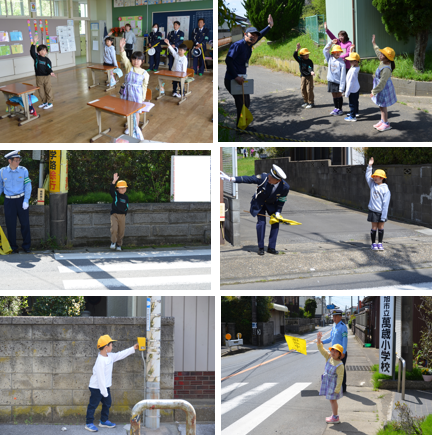 4月15日、1年生の交通安全教室を開催しました。はじめに教室で歩道の歩き方や横断歩道の歩き方について学び、その後実際に外に出て、横断歩道を渡ったり歩道を安全確認をしながら歩いたりしました。一人ひとりがしっかりと自分の力で行うことができました。 交通安全協会及び保護者の皆様、市民生活課の皆様、ご指導・ご支援ありがとうございました。