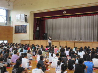 9月1日(月)、全校集会が行われました。 校長先生から「旭一やさしい学校にするために何が大切か」と「防災の日」の2つのことについて話がありました。子どもたちは、集中して聞くことができました。