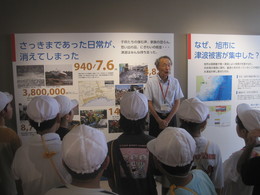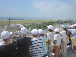 9月17日(水) 旭市防災資料館に校外学習に行きました。まず、津波避難タワーに上り、津波被害の大きかった地域を確認しました。その後資料館にある展示を一つ一つ丁寧に説明してもらいました。子ども達は、津波が何度も押し寄せていたことを初めて知り、テレビで見ていたようなことが、実際自分たちの住んでいる地域で起きていたことに驚いていました。