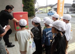 10月3日(金)に町探検に行ってきました。晴天の中、2グループに分かれ、交通ルールを守って歩くことができました。 子ども達は、施設ごとに見学をしながら質問をし、一生懸命にメモをとりながら学んでいる様子がみられました。 地域の方の思いにふれ、とても有意義な時間を過ごすことができました。