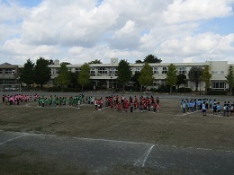本日、前期終業式を行いました。入学、進級してから半年、心身共に大きく成長したとよはたっ子の姿は、とても凛々しかったです。子どもたちの前期の頑張りを通知表で確認していただき、たくさん褒めていただけたらと思います。 また、一昨日に続いて旭市20周年を記念し、航空写真を撮影しました。「とよはた」の人文字を作り、撮影しました。お天気もよく、写真の出来上がりがとても楽しみです。