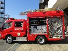 次に消防署では、梯子車に乗って眺めのよい空から地上を見下ろしたり、消防士の方の防火服を着たり、ボンベを背負ったりする体験をしました。救急車の中を見せていただき、ポンプ車の仕組みや作業に使用する道具を見たり触ったりすることができ、貴重な体験をしながら学習することができました。お忙しい中、見学をさせていただいた旭警察署ならびに旭市消防本部の皆様に感謝いたします。