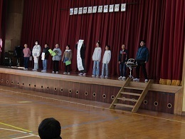 12月12日(金)本校の149周年を祝う創立記念フェスティバルを開催しました。6年生の合唱発表や合唱指導をしていただいた木村先生、宇井先生からの歌のプレゼント、全校レクでかくれんぼをしたり、豊畑小の田んぼで収穫した餅米で餅つきをしたりと充実した楽しい会となりました。また、本日は第2回学校運営協議会も開催し、地域の方々にも学校の様子を参観していただきました。