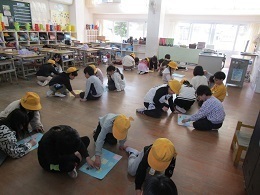 3月18日(水)4校時に1、2年生が交流して、生活科ですごろくゲームを楽しみました。このすごろくは、2年生が生活科で作成した「2年生すごろく」で、1年生が2年生の学校生活を見とおせるように工夫されていました。1年生もとても楽しく夢中で参加していました。来週は、1年生がお礼に「昔の遊び」を紹介して一緒に遊ぶ予定です。