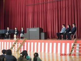 3月25日(水)修了式を行いました。在校生の態度が非常に立派で、この一年間の子どもたちの大きな成長を感じることができ、とても嬉しかったです。一年間、本校の教育活動へのご理解、ご協力に感謝しています。ありがとうございました。 式の終了後、今年度で豊畑小を転出する6名の職員を紹介しました。子どもたちの成長を一緒に見守ってきた職員の転出は、非常に寂しいです。子どもたちもよく話を聞き、挨拶をしている様子もみられました。6名の先生方のご健勝と益々のご活躍をお祈りしています。