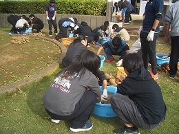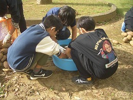 11月5日(水)に、5・6年生が、ふれあい交流会で行う焼き芋の下準備として、先日収穫した芋の土を洗い落とす作業をしました。6年生は昨年も経験しているだけあり、手順が分っていて、5年生に教える姿が見られました。本校の重点的取組である縦割り活動の成果の表れであると感じました。 こうした活動を通じて、高学年としての自覚や学校の伝統を育んでいきます。