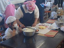 1月16日(金)に、家庭教育学級第3回学習会と閉級式を実施しました。今回は親子でケーキづくりを行いました。朝、廊下ですれ違うと「今日、ケーキをつくるんだよ。」とにこにこしながら話してくれる子もおり、楽しみにしていることがうかがえました。