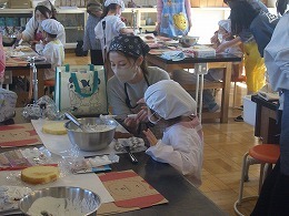 子供たちは、保護者の方と笑顔で話しをしながらトッピングをしたり、生クリームを泡立てたりする姿が見られました。子供たちにとっては、保護者の方々と楽しい時間を過ごす貴重な体験になりました。