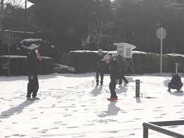2月7日(土)、8日(日)に降った雪が、本校にはまだ溶けずに残っています。子供たちは雪合戦をしたり、雪だるまをつくったりと、思い思いのやり方で雪を楽しんでいます。温暖な本市では、なかなか経験できない体験をさせることができています。着替えがないので、服を濡らさないように注意をしながら、冬ならではの体験をさせていきます。