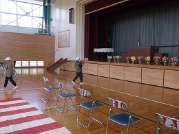 明日、3月12日(木)は卒業式の予行です。予行は会場を含め、できるだけ本番に近い形で行います。そのために、5年生を中心とした在校生が、3月11日(水)に会場準備をしました。こうした作業を通して、4月から最上級生になるという自覚を高めていきます。